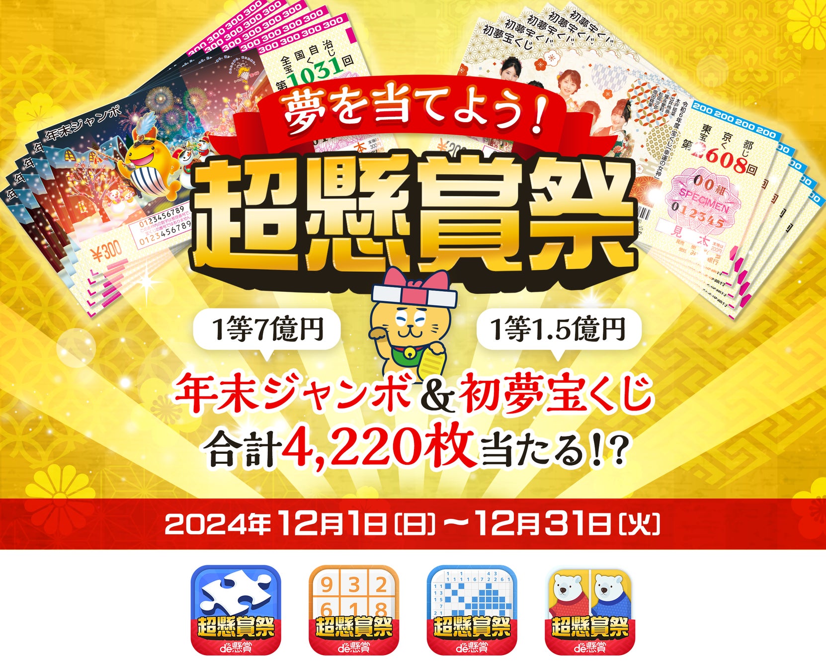 年末ジャンボ宝くじ(1等7億円)&初夢宝くじ(1等1.5億円)が当たるかも!?豪華賞品が勢ぞろいの夢のキャンペーン!