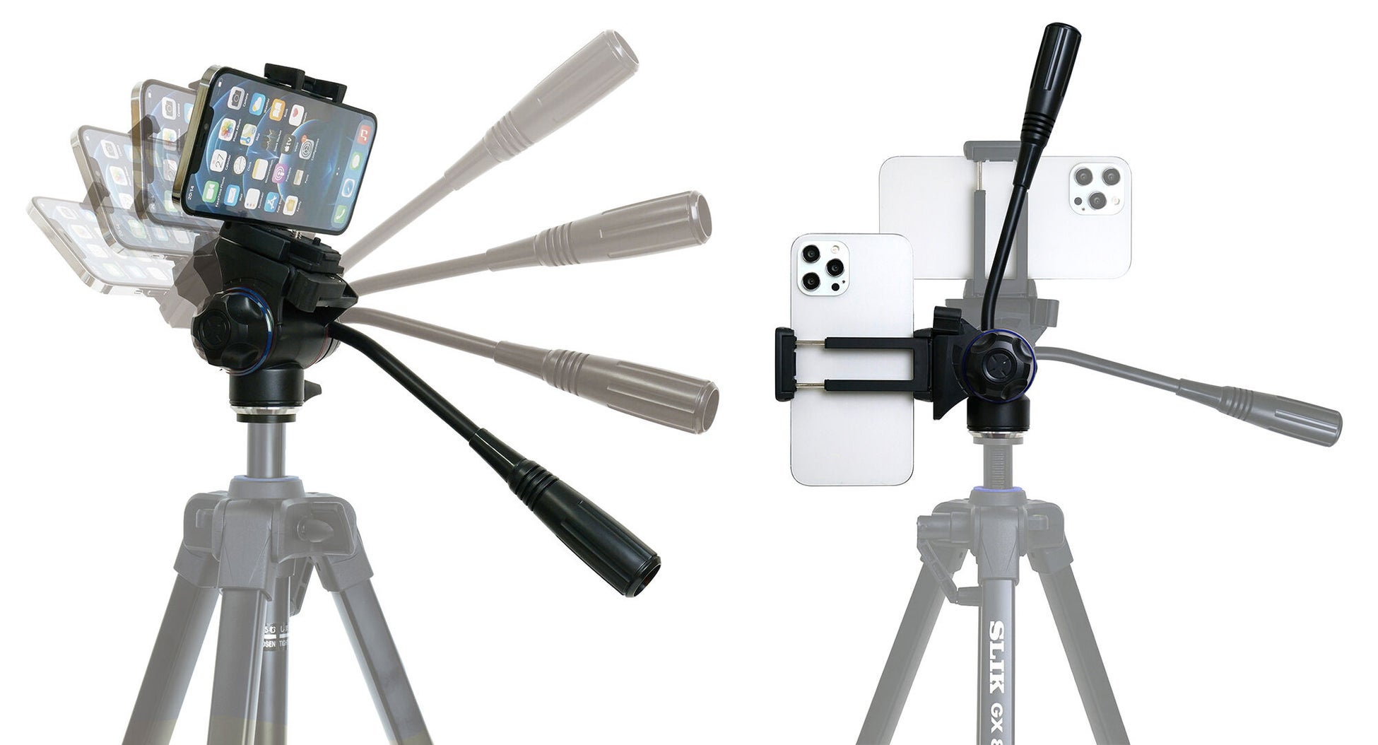 スリックの大ヒット三脚「GX 6400」に、スマートフォンホルダー組み込みクイックシューを装備。