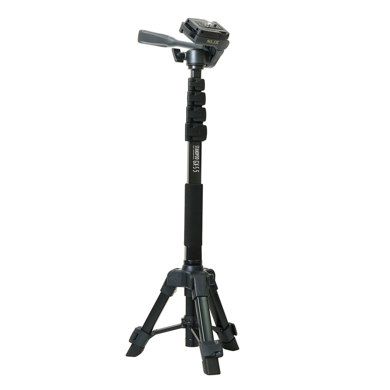 スマートフォン対応クイックシューを装備した三脚「スリック GX-S 6400 ブルー /スリック GX-S 6400 Video」と、5段自立一脚「スリック スタンドポッドGX-S5」