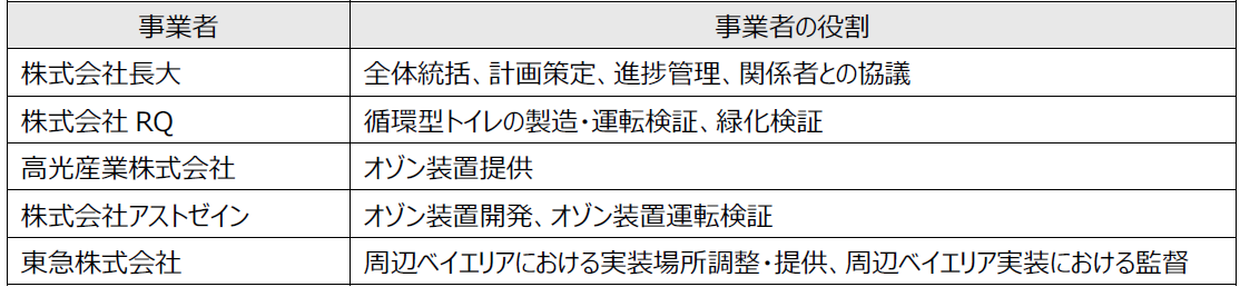 株式会社長大(代表企業)、株式会社RQ、高光産業株式会社、株式会社アストゼイン、東急株式会社の5社で構成するコンソーシアムが応募していた「複合発酵技術を活用した循環型トイレの都市での実装」実証事業が、東京都主催の「東京ベイeSG プロジェクト 令和7年度先行プロジェクト」※ に採択されました。