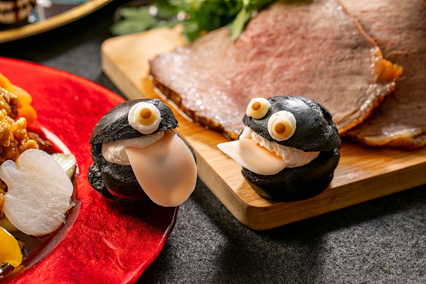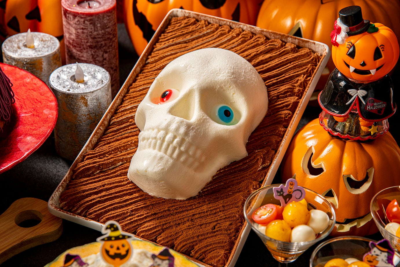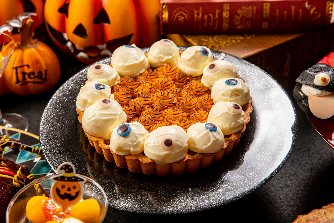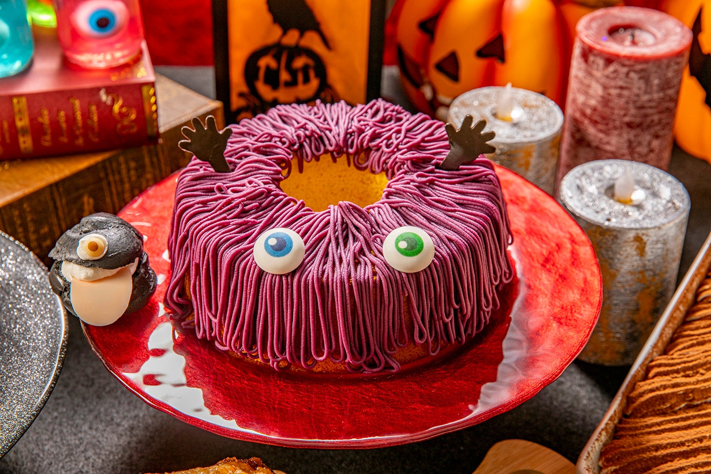 フォトジェニックなハロウィンスイーツ達はシフォンケーキに紫芋のモンブランをデコレーションした「モンスターパンプキンシフォン」やお料理にいたずらを仕掛けるタイミングを狙う「ベロ・ベロシュー」、デスマスクに化けた「スケルトンティラミス」、お料理を鋭い目つきで見つめる「スパイダーチョコレートケーキ」など今にも動き出しそうなスイーツ達を集めました。