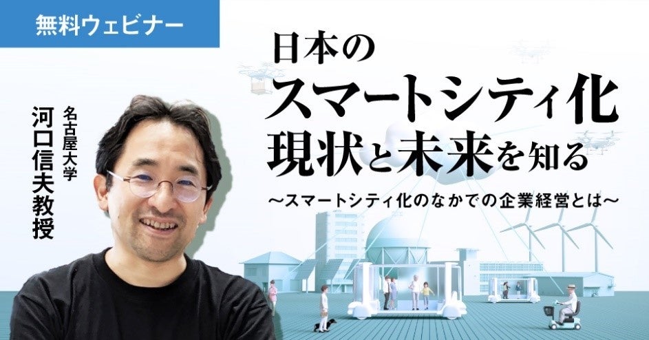 本ウェビナーでは、名古屋大学 未来社会創造機構 モビリティ社会研究所 教授 河口信夫氏をお招きし、スマートシティ分野における日本の現状や、スマートシティ化の実現が生活や企業経営に与える影響について、解説いただきます。