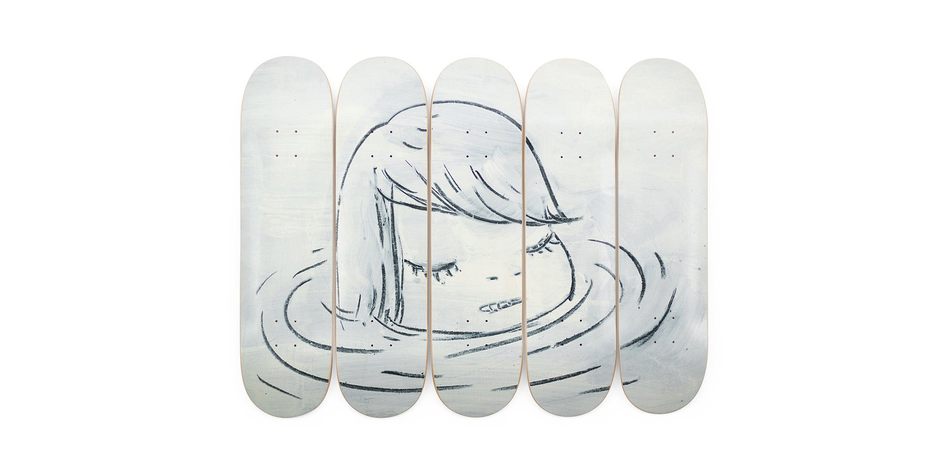 <MoMA Exclusive>著名な日本人アーティスト、奈良美智がアクリル絵具と木炭で描いた『In the Water』(2019年)をあしらったスケートボード5点セット。この作品では目を閉じることで、水の中を歩く女の子が、安心しているのか、大変な状況にあるのか、どんな状態なのかを不明なままにしています。幼少期から絵本が大好きだった奈良のパワフルで曖昧な絵は、人間のイマジネーションをかき立てる力を引き出します。各ボードサイズ:約)縦79cm×横20cm×厚さ1.3cm。※3月18日発売(オンラインストア限定)