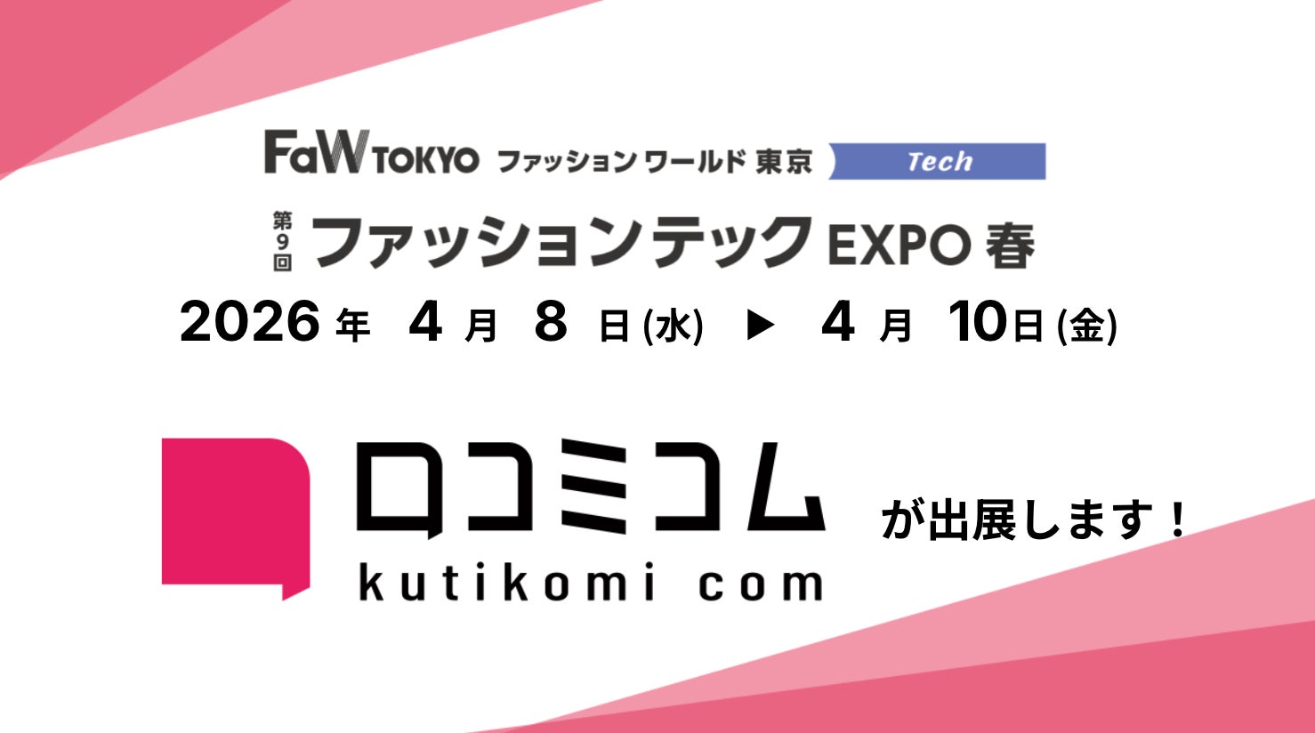 「口コミコム」が第9回ファッションテックEXPO 2026 春に出展 ー4月8日(水)〜4月10日(金)@東京ビッグサイト