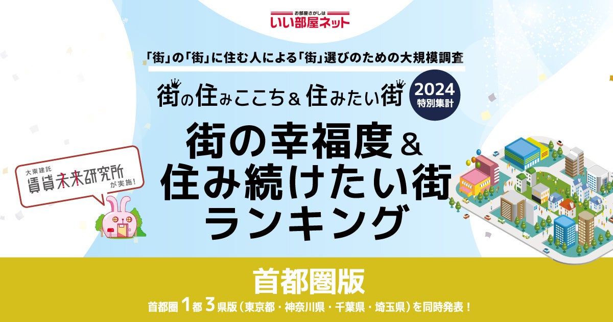 いい部屋ネット「街の幸福度 & 住み続けたい街ランキング2024<首都圏版>」(街の住みここちランキング特別集計)発表