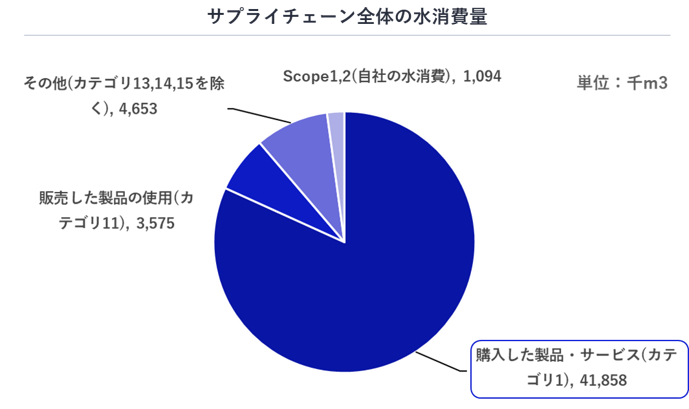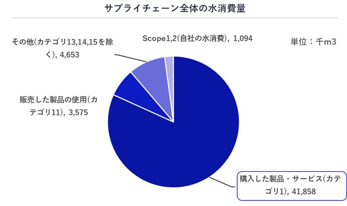 NECがサプライチェーン全体で誘発する水消費量をScope3の考え方に基づき算定しました。その結果、Scope3カテゴリ1に相当する「購入した製品・サービス」に起因する水消費が最大であると判明し、サプライチェーン全体での水マネジメントに関する評価の知見を蓄積することができました。