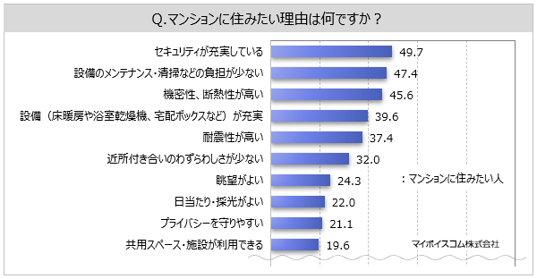 【マンションのブランドに関する調査】一戸建てに住みたい人は約55%、マンションは2割強。マンションに住みたい理由は「セキュリティが充実」「設備のメンテナンス・清掃などの負担が少ない」などが各5割弱