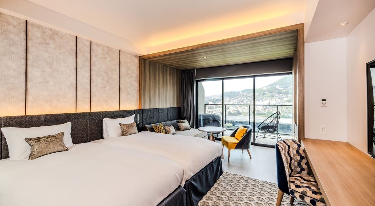 「客室からスタジアムの臨場感を味わえる「スタジアムビュールーム」と、長崎の美しい山々と街並みを楽しむことができる「シティビュー」の2種類の客室を6つのグレードに分け、さらにバリアフリー対応客室を含め、合計243室をご用意」(ホテル公式サイトより)