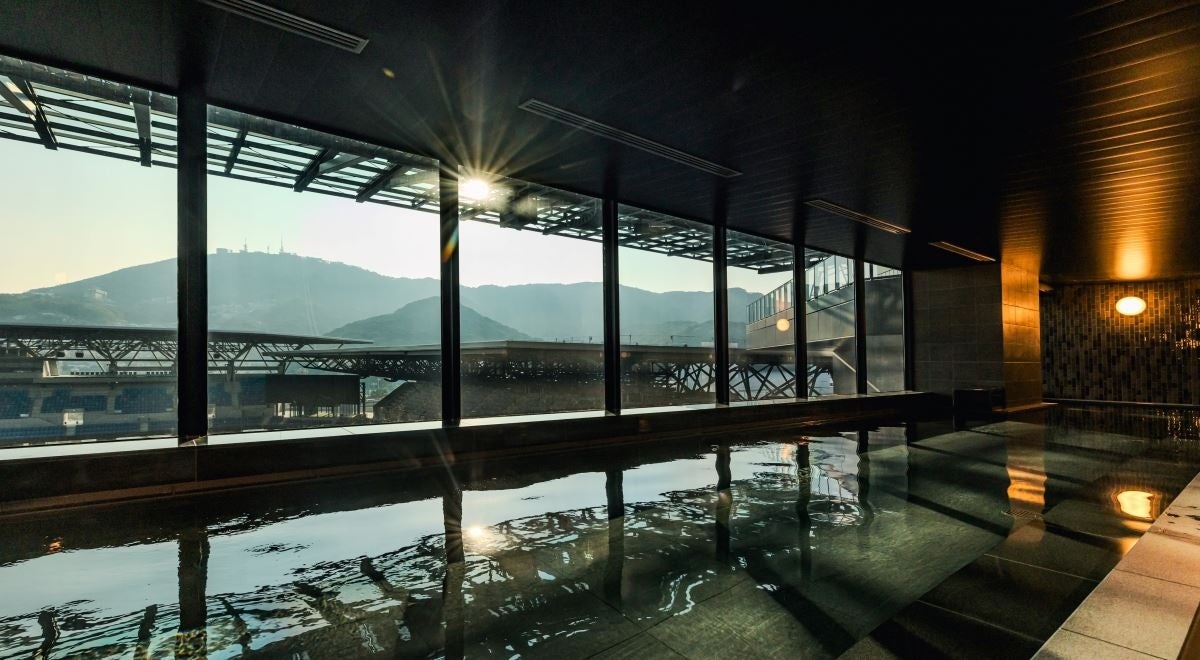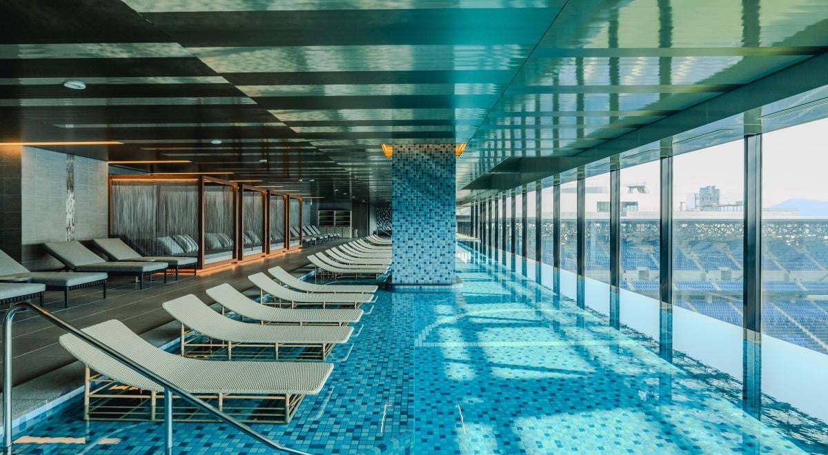「“日本初”サッカースタジアムの壮大な景色を一望できる屋内プール!」(ホテル公式サイトより)