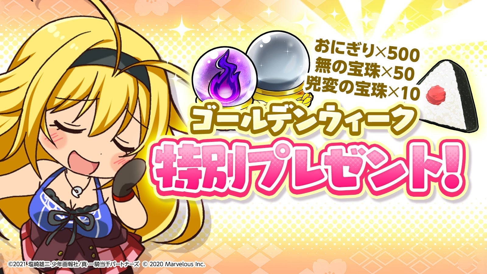 ゴールデンウィーク中にゲームにログインすると「おにぎり×500」や「兇変の宝珠×10」など