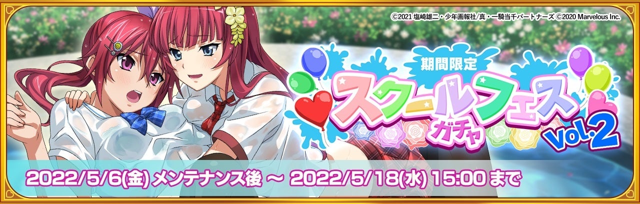 株式会社マーベラス(代表取締役社長 許田周一/所在地:東京都品川区)は、原作が20周年を迎えた人気シリーズ「一騎当千」のAndroid/iOS向けゲームアプリ『一騎当千エクストラバースト』で、2022年5月6日(金)より、イベント「ずぶ濡れ!?ハプニング学園祭」の後半を開始、またメインストーリー12部前編も追加いたしました。