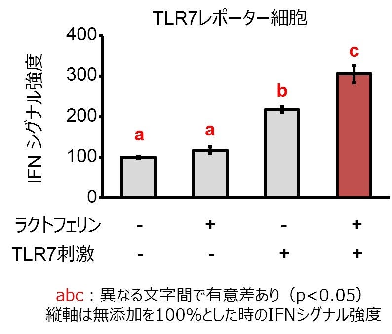 ②ラクトフェリンはTLR7の感受性を高め、IFNシグナルを増幅する