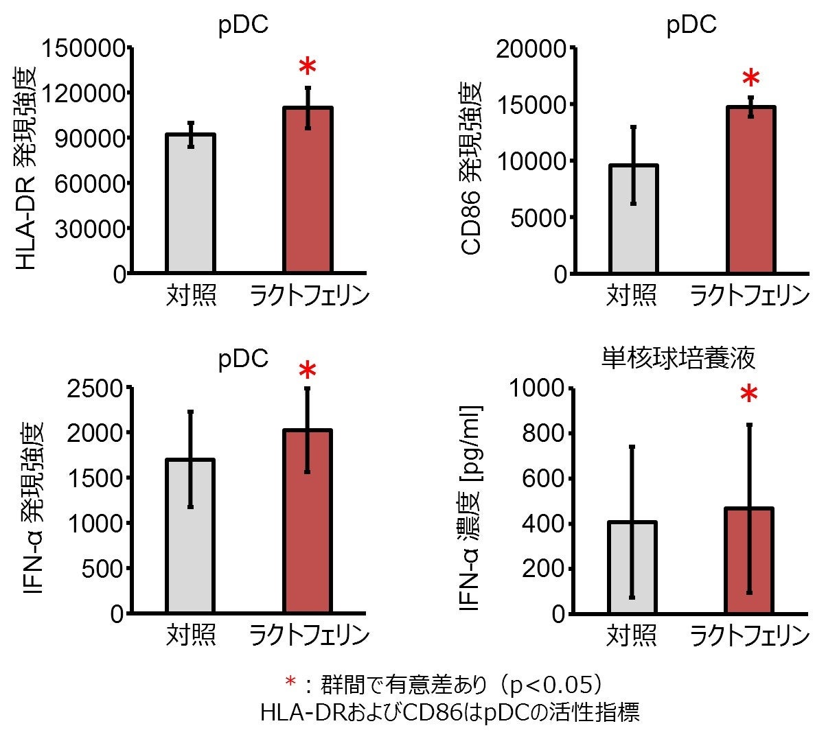 ラクトフェリンがプラズマサイトイド樹状細胞に作用して免疫を調節するメカニズムを確認