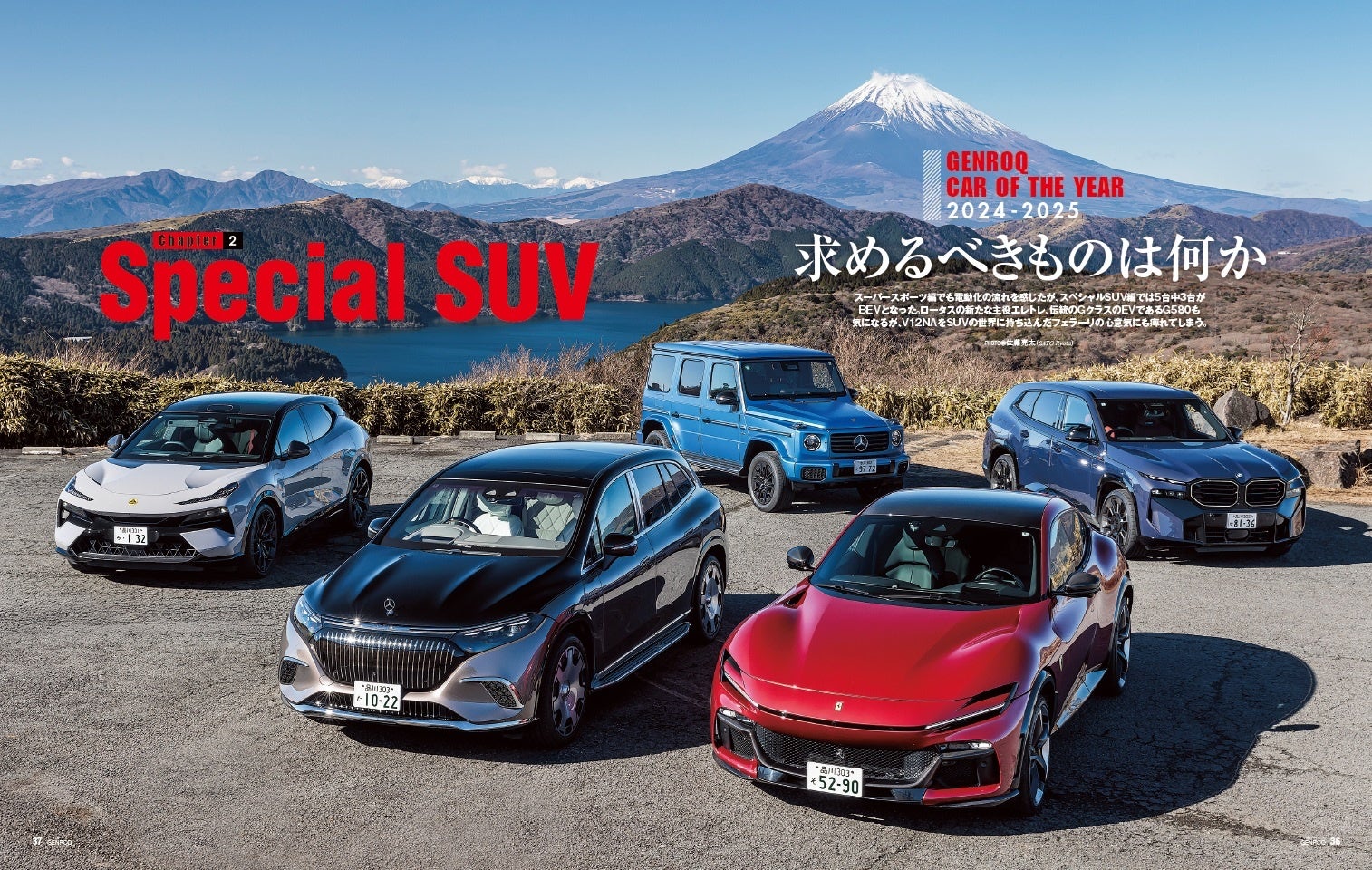 スーパースポーツ編でも電動化の流れを感じたが、スペシャルSUV編でも5台中3台がBEVとなった。ロータスの新たな主役エレトレR、伝統のGクラスのEV版=G 580 with EQテクノロジーも気になるが、V12自然吸気をSUVの世界に持ち込んだフェラーリの心意気にも痺れる。