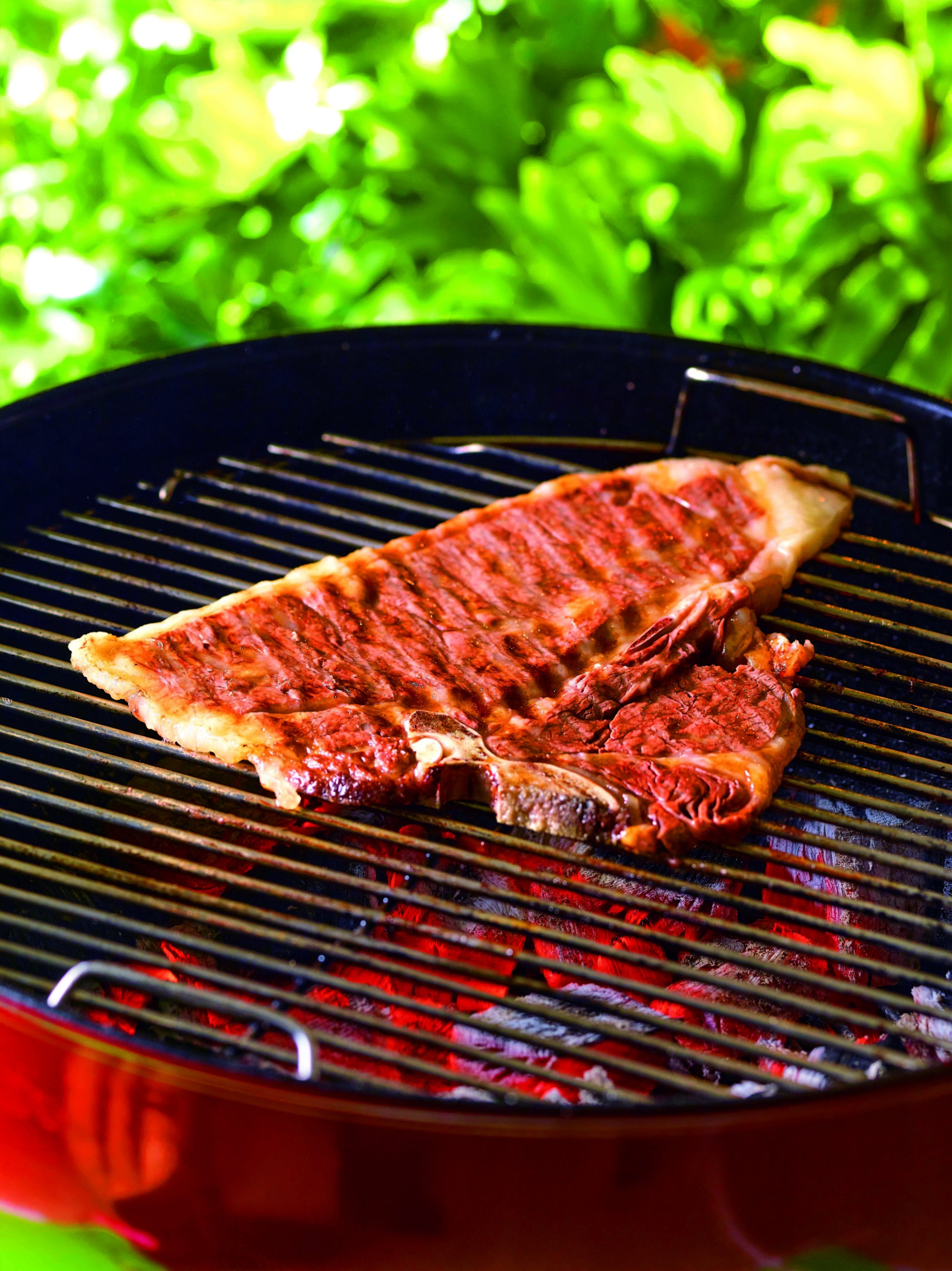 国産黒毛和牛の2つの部位を1度で味わえるTボーンステーキです。T字形の骨の左右には、サーロインとヒレが並びます。