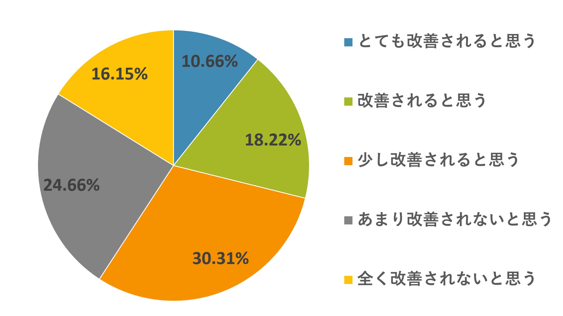 「濃厚接触者の隔離期間短縮により、社会的な人手不足が改善されると思いますか。」に対し、「とても改善されると思う(10.66%)」「改善されると思う(18.22%)」「少し改善されると思う(30.31%)」「あまり改善されないと思う(24.66%)」「全く改善されないと思う(16.15%)」と回答。