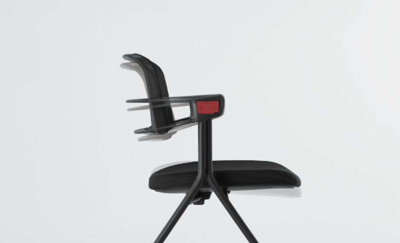 「Freory」は、背と座にチルト機能を搭載し、前傾と後傾姿勢両方を無理なくサポート。調節不要でさまざまな人の体格や姿勢にフィットします。また、チルト機能に加えてゆったりしたサイズ感で、会議室や研修室などで座る人を限定しないイスとしてストレスフリーな座り心地を実現しました。座面を跳ね上げることで、水平にスタックすることが可能。多数並んだ際にも、すっきりとした空間を演出しつつ、リクライニングチェアーのような、 ゆったりとした心地よさをも感じられるデザインです。