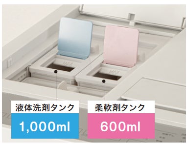 ニトリのドラム洗として初の洗剤・柔軟剤自動投入機能を搭載。洗剤1,000ml、柔軟剤600mlの大容量タンクで毎回の計量・投入の手間がなくなり洗濯がもっと簡単に。
