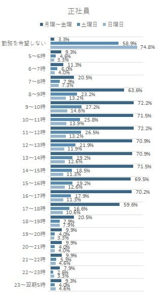 正社員希望者、平日9時から17時までの間の勤務を約7割が希望