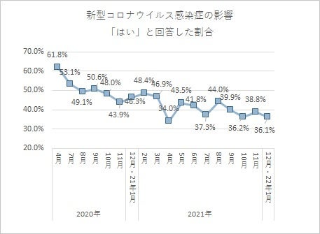 昨年12月から今年の1月にかけての調査結果では、新型コロナウイルス感染症の影響を受けて仕事探しをしている人は36.1%で、21年9月以降4割を下回っています。
