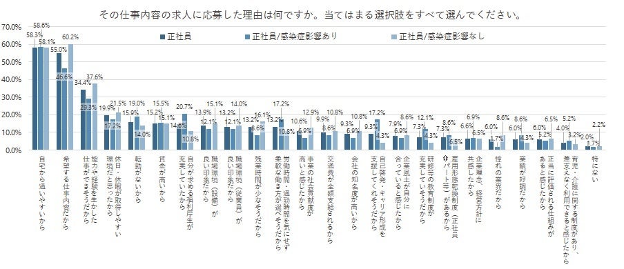「自宅から通いやすいから」58.3%、「希望する仕事内容だから」55.0%、