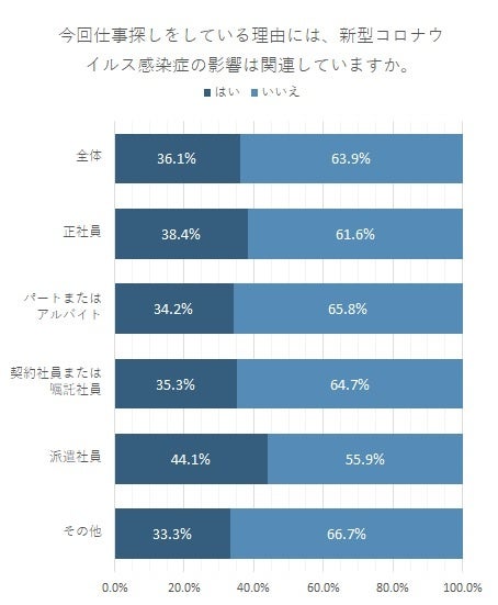 新型コロナウイルス感染症の影響で仕事を探している人は36.1%