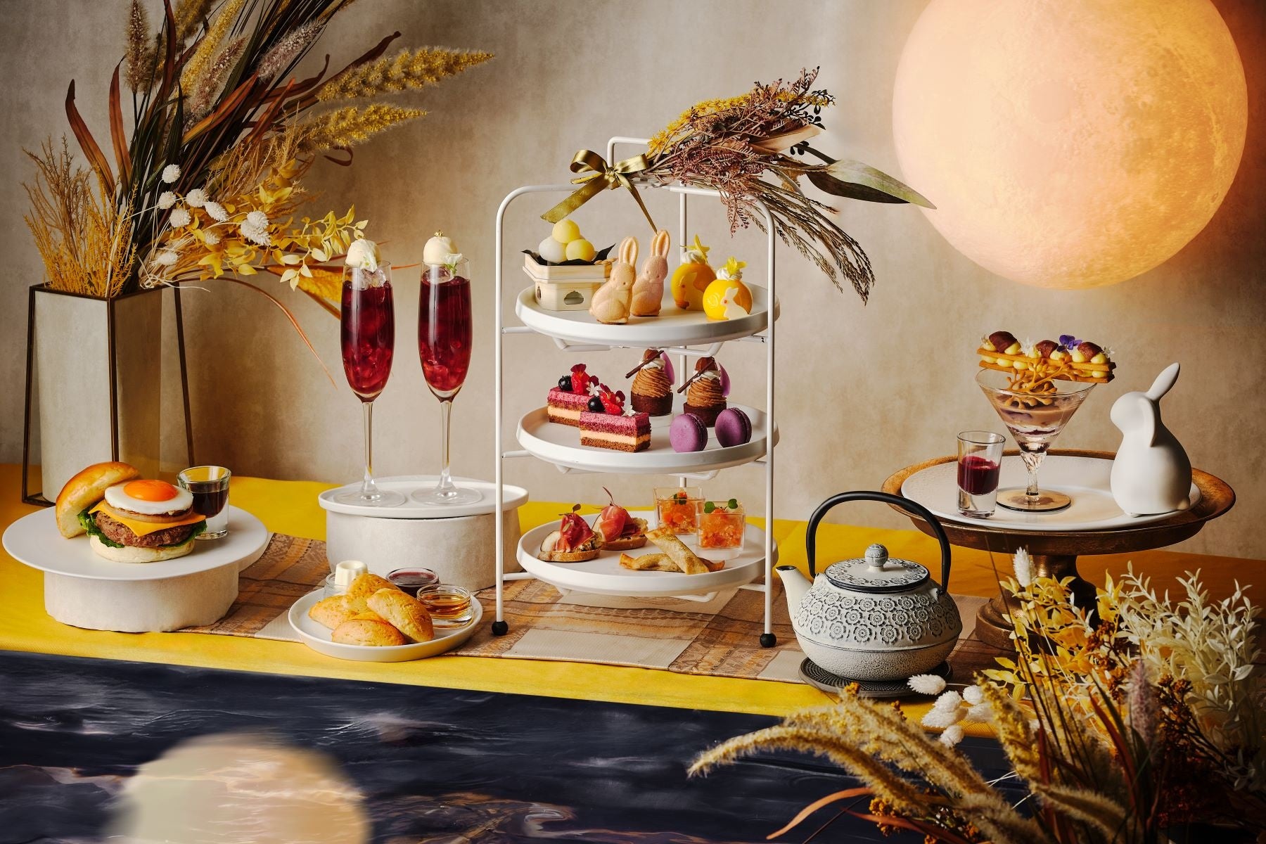 秋の夜長にお月見気分を楽しめる“2色団子やうさぎ型の最中、満月に見立てた柚子ムース”などを堪能!秋の風物詩“お月見バーガー”もオプションでご用意『お月見アフタヌーンティー』
