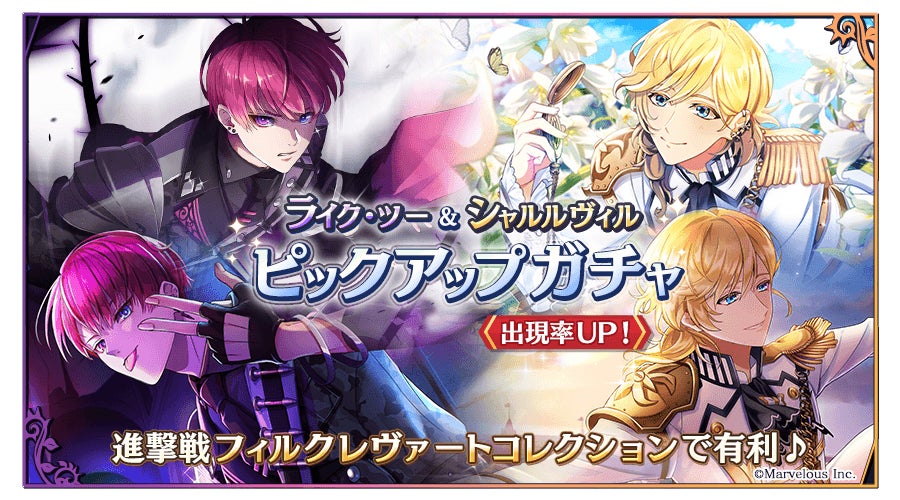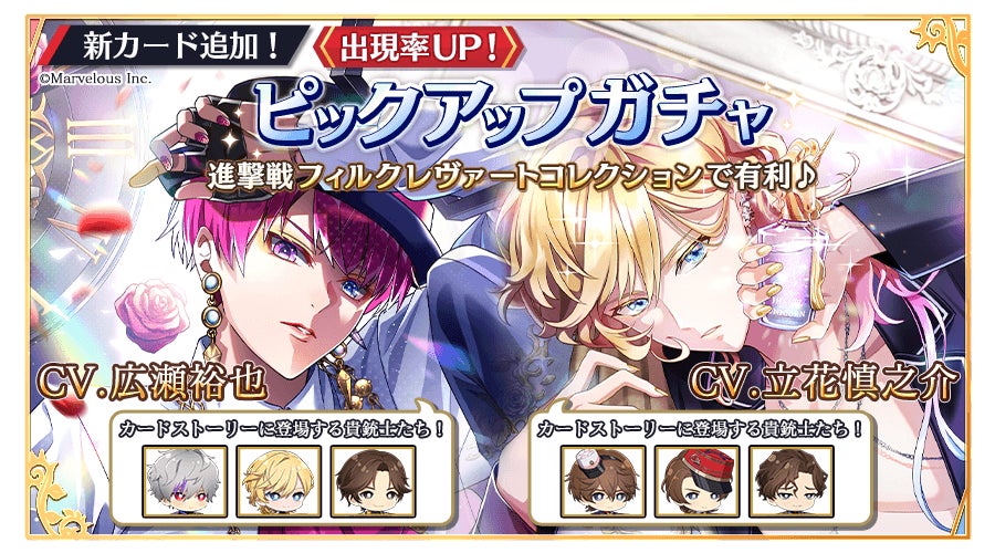 - ★3「【ELAN May issue】ライク・ツー(CV:広瀬裕也)」と★3「【Be My Unicorn】シャルルヴィル(CV:立花慎之介)」の新カードがピックアップガチャに登場!