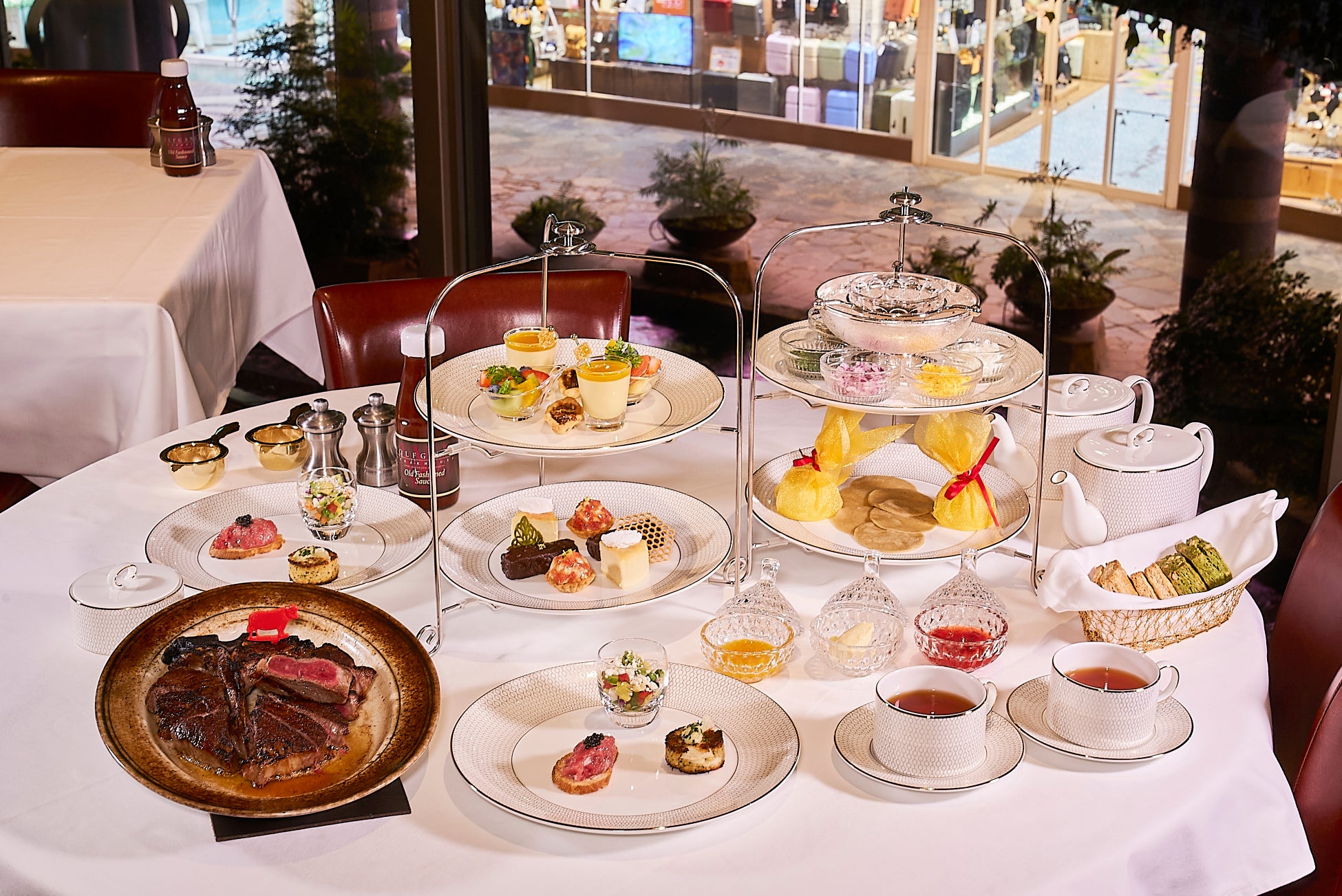 お食事は、クラブケーキやクロスティーニ、サラダで構成したセイボリープレートと、2種のスコーン、6種もの自家製のデザートアイテムをご賞味いただく2段のケーキスタンドに、メインとしてステーキで構成しています。ステーキは、カジュアルかつリーズナブルにサーロインステーキを楽しむ「EXPERIENCE(エクスペリエンス)」と、ウルフギャングが看板に据えるTボーンステーキの定番「PREMIUM(プレミアム)」、そしてTボーンステーキに加えて前菜にキャビアプレートを据えた極上「SIGNATURE (シグニチャー)」の3プランから、シチュエーションに合わせ、お選びいただけます。