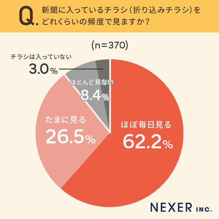 まずは、新聞に入っているチラシ(折り込みチラシ)をどれくらいの頻度で見るか聞いてみました。