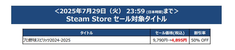 『パワフルプロ野球2024-2025』と『プロ野球スピリッツ2024-2025』も半額