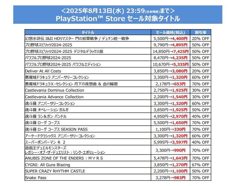 株式会社コナミデジタルエンタテインメント(以下、KONAMI)は、ダウンロード版のゲームをお得に購入できる「Summer SALE」の第2弾を開催中です。