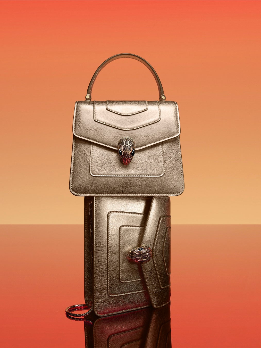 海と大地が出会う美しい海岸の入り江をインスピレーションとしたコンパクトでモダンな新作が、心躍る豊かなカラーヴァリエーションで登場いたします。また、セルペンティ 75周年を記念して誕生したブラックジルコニアのパヴェをあしらった印象的な新しいスネークヘッドが、ゴールドカラーとの心ときめくコントラストを生み出した特別なバッグのクリエーションが、本コレクションにフレッシュな印象と華を添えます。