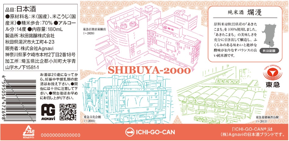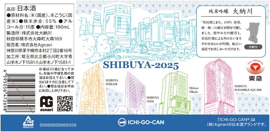 東急株式会社(以下、東急)および株式会社東急レクリエーション(以下、東急レクリエーション)は、日本酒一合缶ブランド「ICHI-GO-CAN®」を展開するスタートアップ企業の株式会社Agnavi(以下、Agnavi)との事業共創により、「SHIBUYA SKY SOUVENIR SHOP」において、東急と包括連携協定を締結している秋田県の県産日本酒が入った「渋谷オリジナルラベルの日本酒缶」のセットを、渋谷スクランブルスクエアの開業6周年にあたる11月1日(土)から限定販売します。