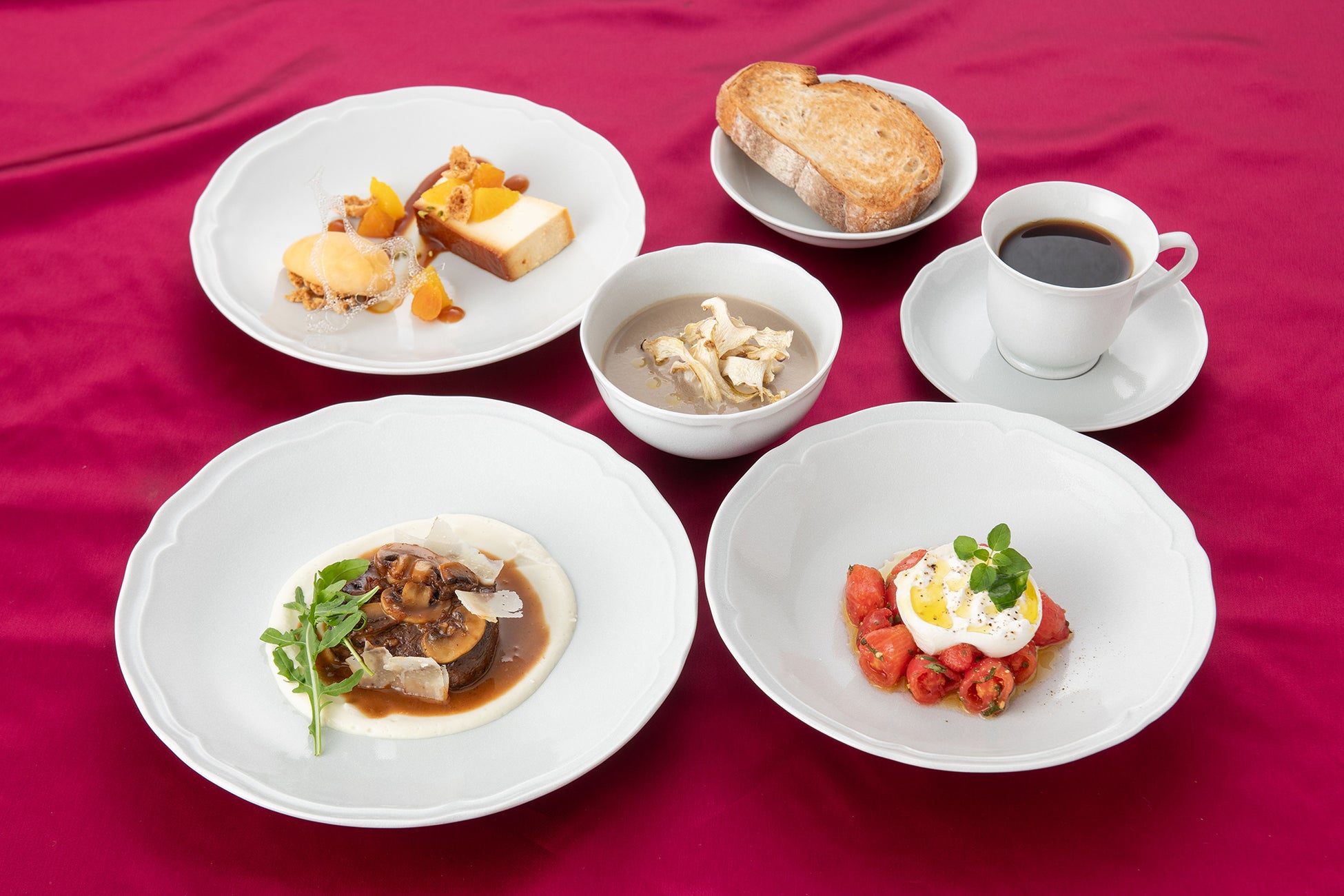 華やかなクリスマスイベントを演出するにふさわしい、このディナーコースのメインディッシュである「ハンガーステーキポルチーニクリーム カリフラワーピュレとパルメザンチーズ」は、コース提供に先駆け、12月15日(月)よりアラカルトメニューとして単品販売します。
