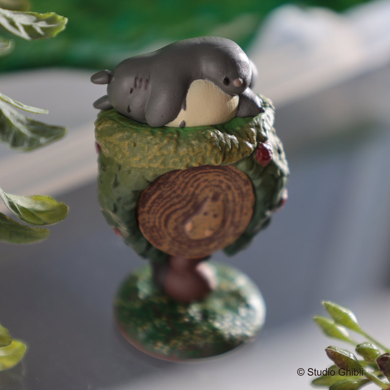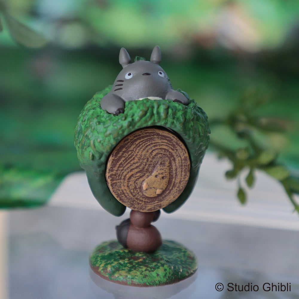 付属の台座には、丸太の年輪の中に小トトロのレリーフがさりげなく施され、リングを台座につけてインテリアとして飾ってもお楽しみいただけます。ブラインドパッケージ仕様のため、どのリングが出るかは開けてからのお楽しみです。