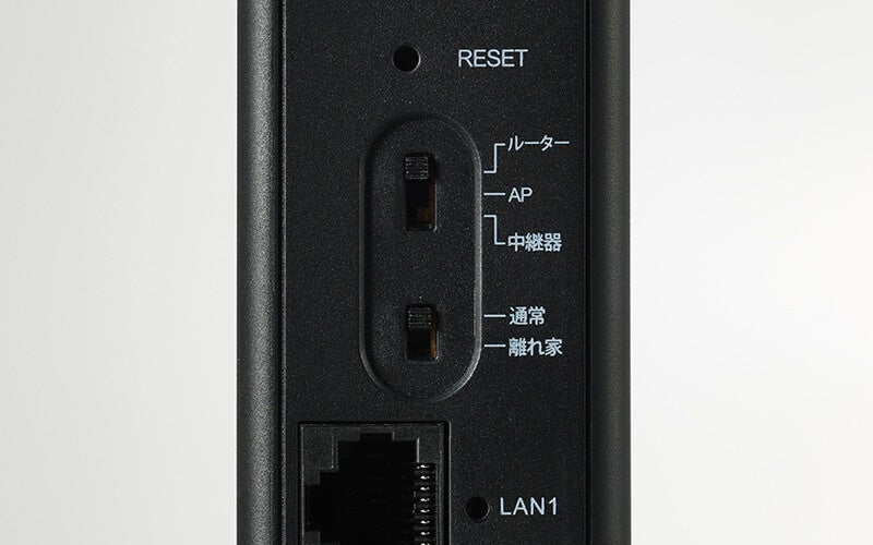 ルーター/AP(アクセスポイント)/中継器の基本動作モードに加え、使用する5GHzの周波数帯をスイッチで切り替えることが可能な「通常」「離れ家モード」(※)を搭載。使用環境に合わせて柔軟にモードを変更できます。