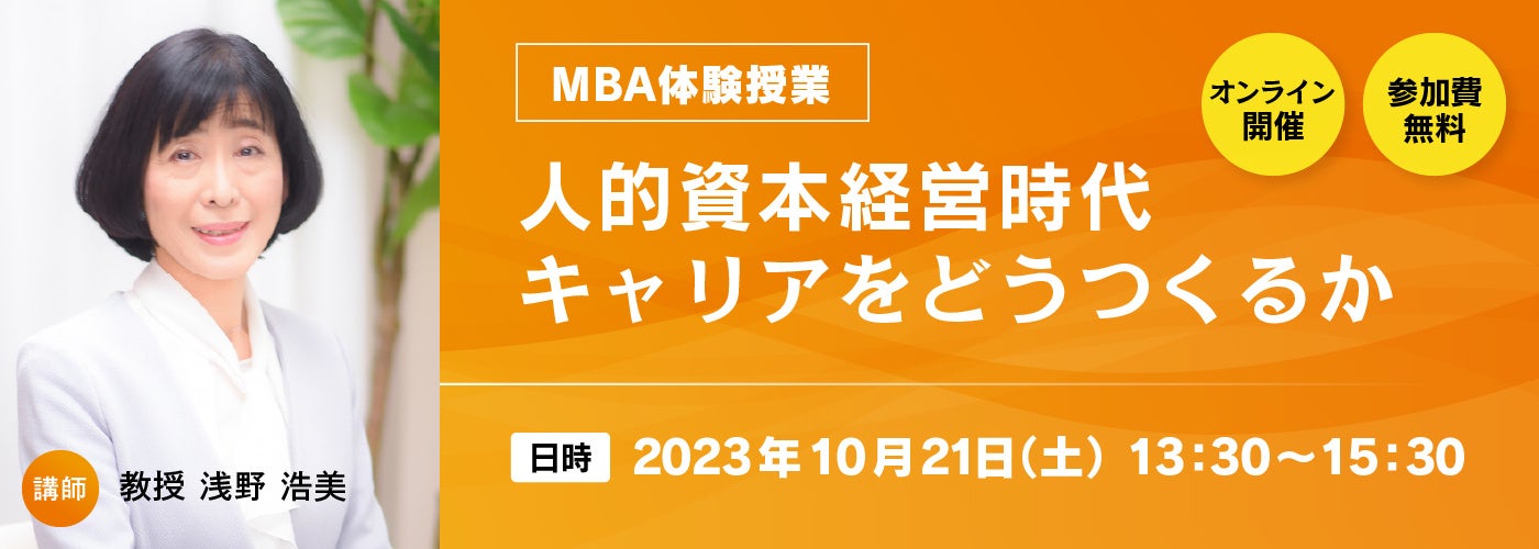 事業創造大学院大学「人的資本経営時代 キャリアをどうつくるか」10/21(土)13:30~ MBA体験授業 開催