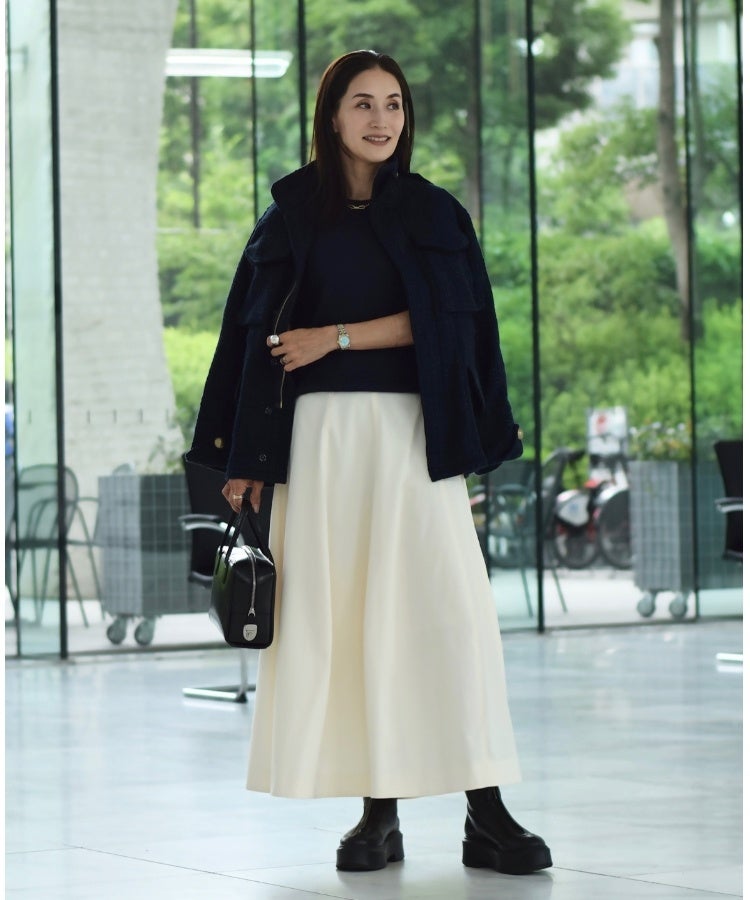 歩く度にふわりと動くスカートのヘム、ボリュームがありながら腰回りはすっきりと女性らしいシルエットで穿けるのが魅力です。