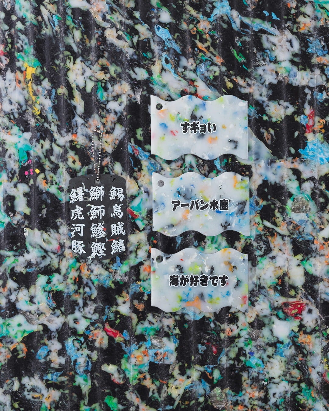 もう一つは漁師たちが船に掲げる大漁旗をモチーフに。カラフルな大漁旗を、カラフルな海洋ごみ由来のプラスチックで表現しています。