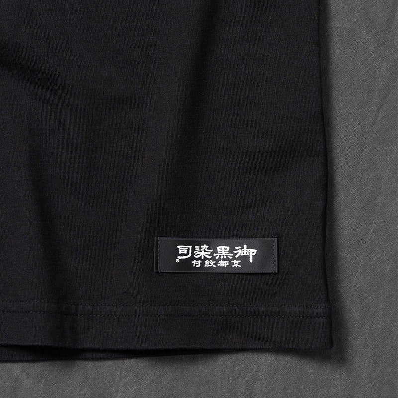 伝統的な正装である「黒紋付」だけを100年間染めてきた京都の染色工場「京都紋付」が持つ“深黒加工”に染め上げる技術を用いた、日本ならではの職人技が光るTシャツコレクション。