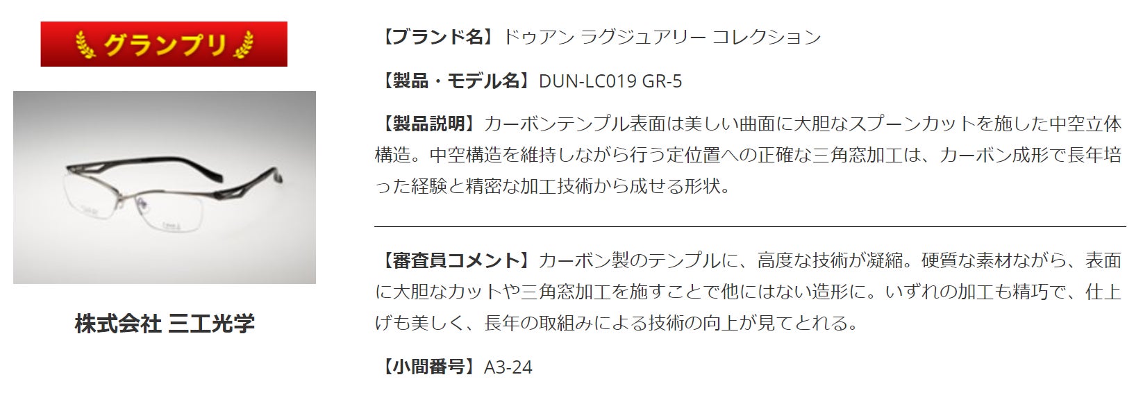 ◆テクノロジー部門 グランプリ受賞 株式会社 三工光学 / DUN-LC019 GR-5