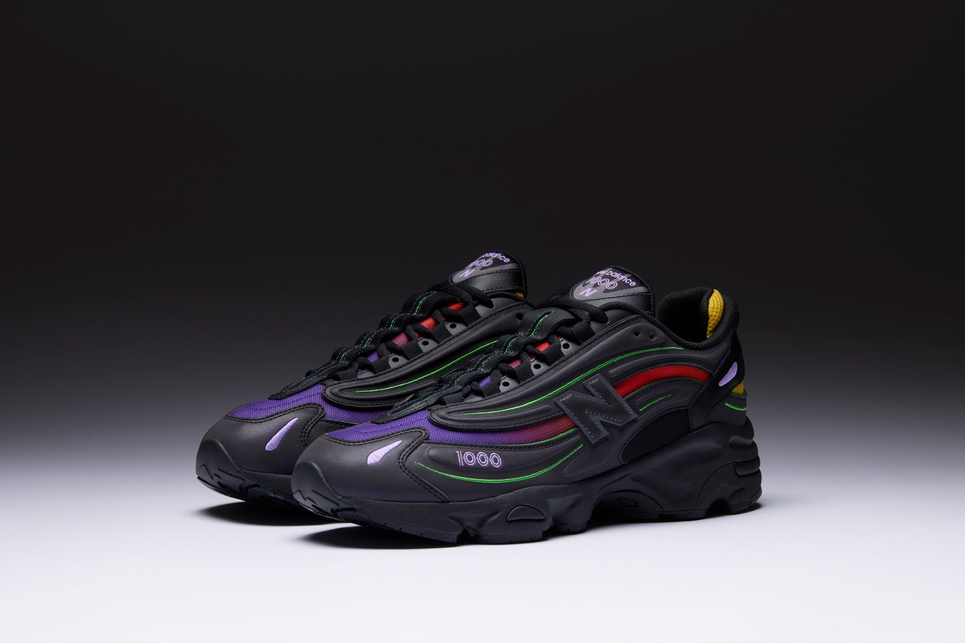 つま先のサイドに「1000」、ヒールタブに「N」を刺繍したブランディングでディティールをブラッシュアップ、流線的なシルエットや、彫刻的なミッドソールの形状や特徴的なカラーリングは、Y2Kタッチなデザインで仕上げています。