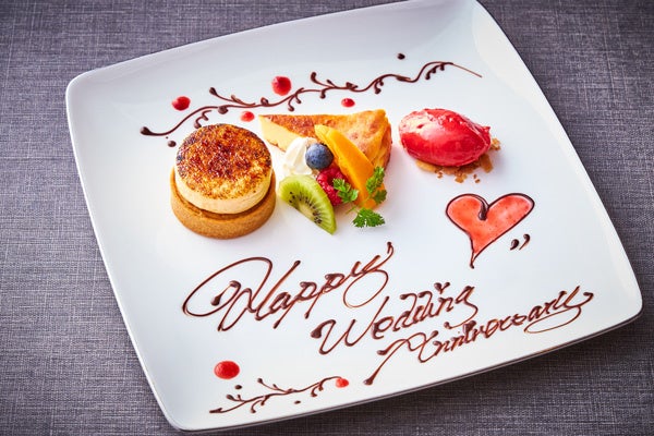 また、当日のご注文でも承れる、お祝いの席などに最適な『アニバーサリーデザート』もございます。お祝い以外でも、特別な瞬間の演出に、プチメッセージ入りのデザートで食事の最後を締めくくってはいかがでしょうか。