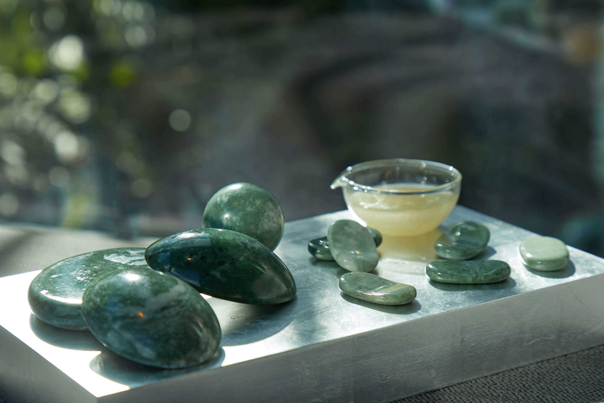 2日目に行うのは、温めた翡翠を使ったトリートメントです。温めた翡翠を腰や臀部に置くことで、全身が温まります。さらに、セラピストが滑らせるようにして使う翡翠が体の芯から緊張を和らげます。
