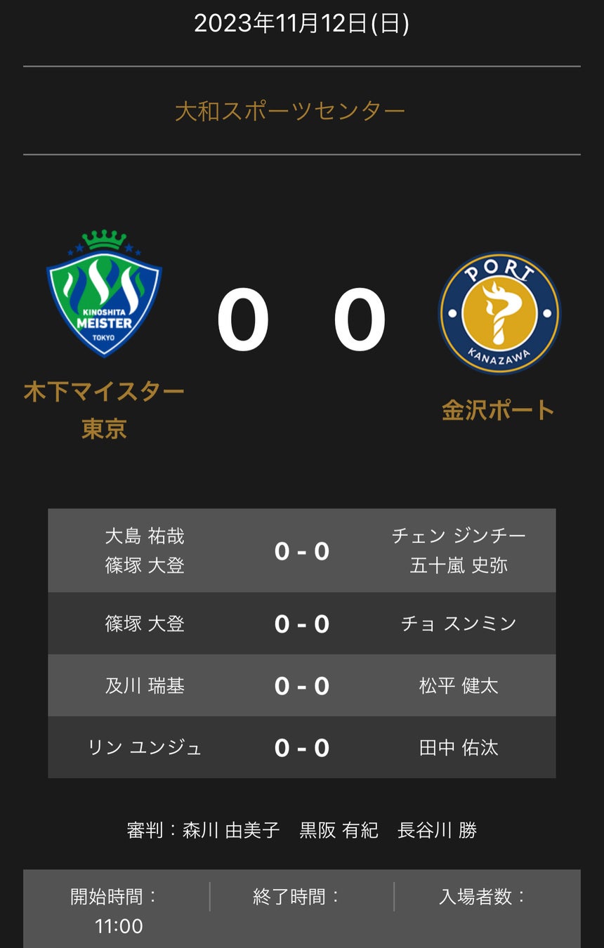 ノジマTリーグ 2023-2024シーズン 公式戦 11月12日開催 木下マイスター東京 vs 金沢ポート オーダー発表