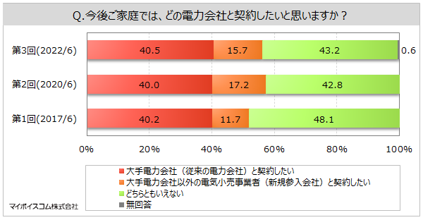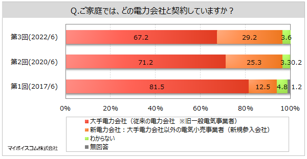 マイボイスコム株式会社(東京都千代田区、代表取締役社長:高井和久)は、3回目となる『電力・ガス自由化』に関するインターネット調査を2022年6月1日~5日に実施し、10,040件の回答を集めました。調査結果をお知らせします。