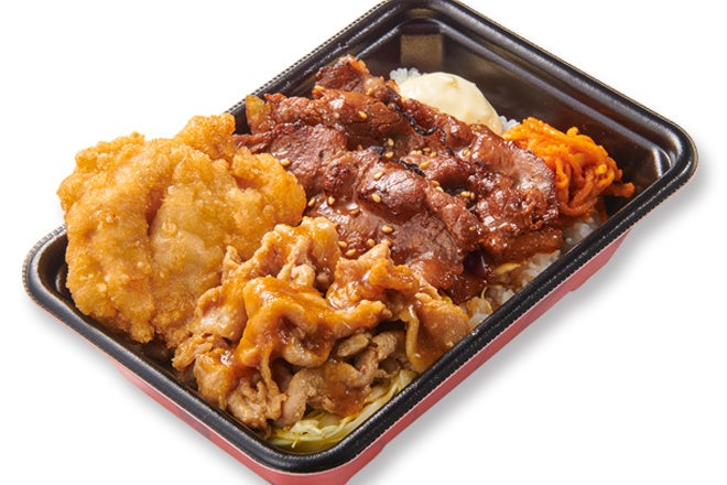 3種類を楽しめる!「焼肉&しょうが焼き&から揚げ弁当」940円(税込)
