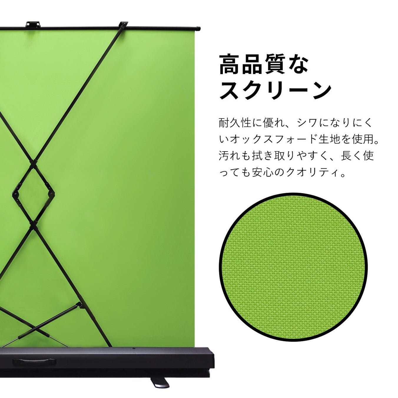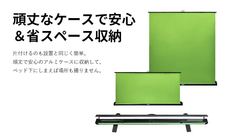 ■設置・片付けが楽々。約200cmまで柔軟に高さ調整可能な大型グリーンバック