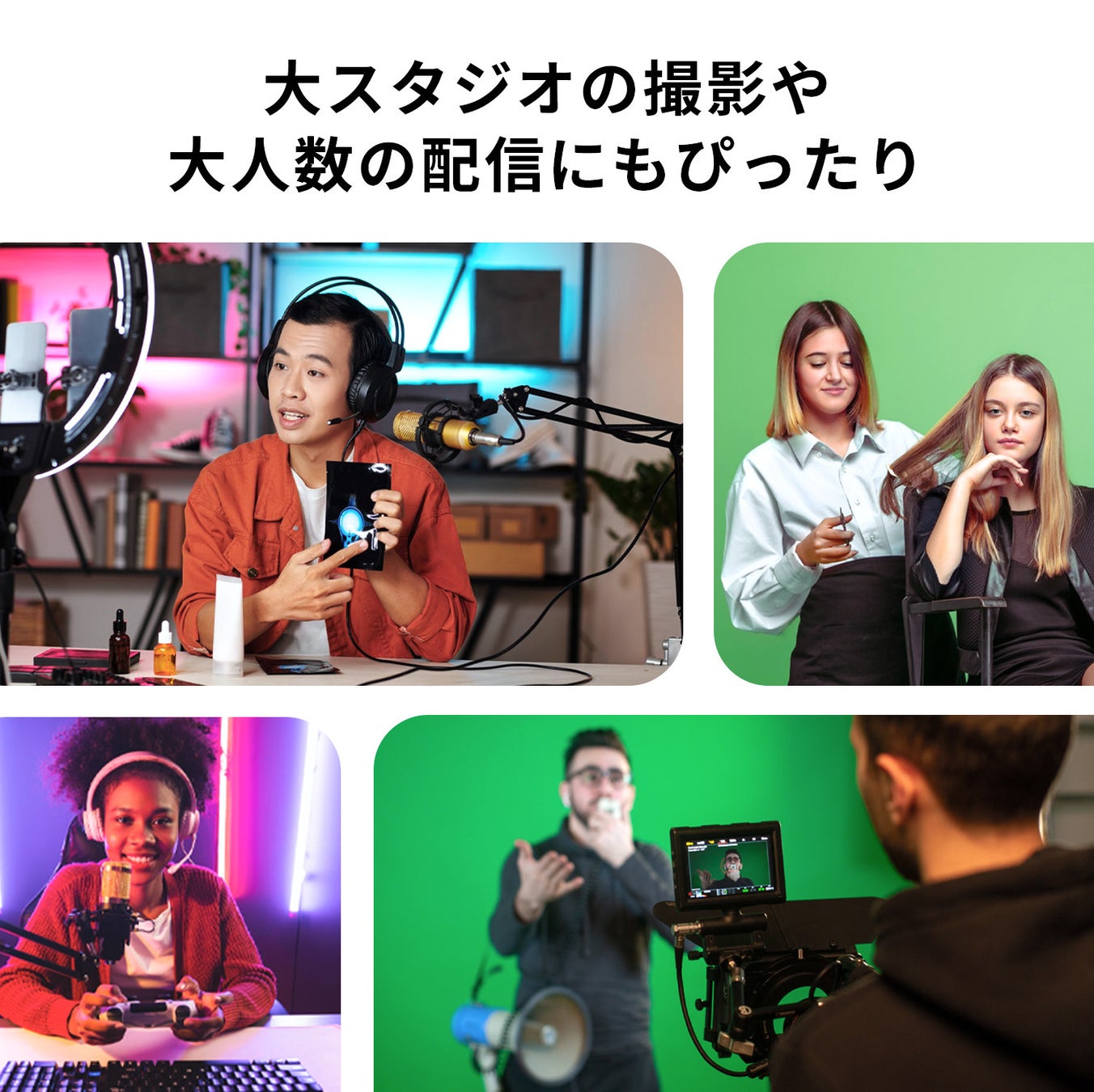 200cm×200cmのワイドサイズなので、お部屋が散らかっている時なども広く隠せて便利です。また大スタジオの撮影や大人数の配信にもぴったりです。